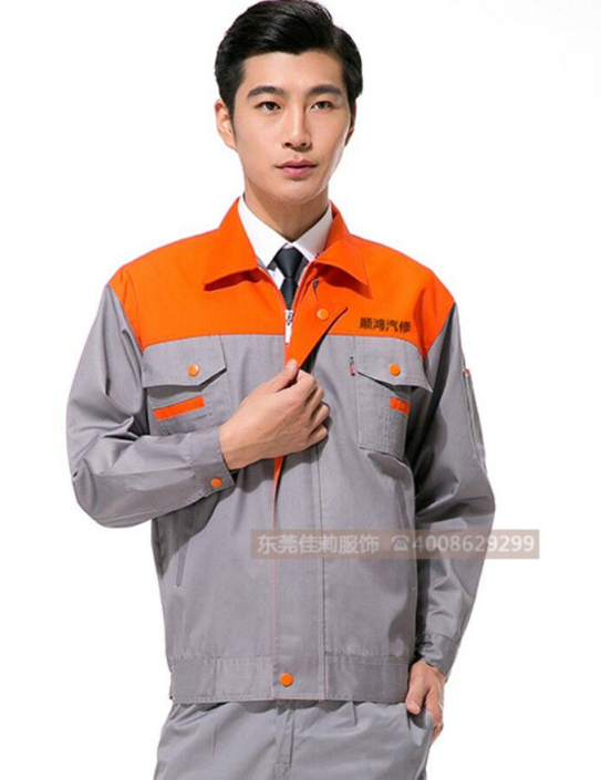 深秋的來臨,又到了換工作服的時候。順鴻汽修的李小姐在九月底聯系了佳莉服飾,現在已經可以穿新的長袖工作服了。順鴻汽修是我們的老顧客,已經在佳莉做了兩年的工衣了,對佳莉非常的信任,又再一次定做了秋冬工作服,這次定做的是一款橙色撞灰色的款式,面料采用滌棉面料,舒服,耐磨。