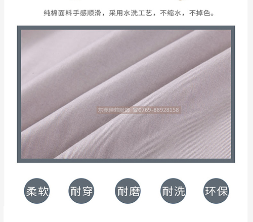有些老板就有反對意見,很多員工的工作環(huán)境都是出汗量大的,必須要用透氣快干的面料,而純棉的工作服面料,結(jié)構(gòu)密度相對要其他摻雜了滌綸的面料要更為緊密。運動產(chǎn)生的熱量如果不及時的排查,會回遷到體內(nèi),體質(zhì)相對比較弱的人會引發(fā)感冒等等相關(guān)的事件。