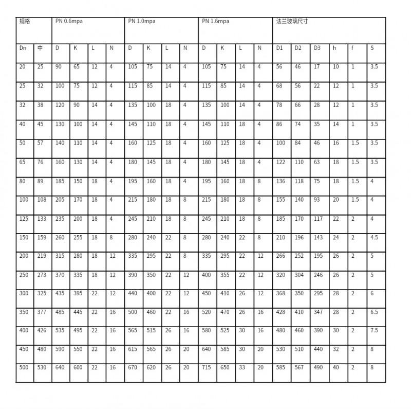 鋼襯玻璃法蘭標準是按HG20592- 1997,壓力等級PN0.6mpa. PN1.0mpa. PN1.6mpa的標準設計。