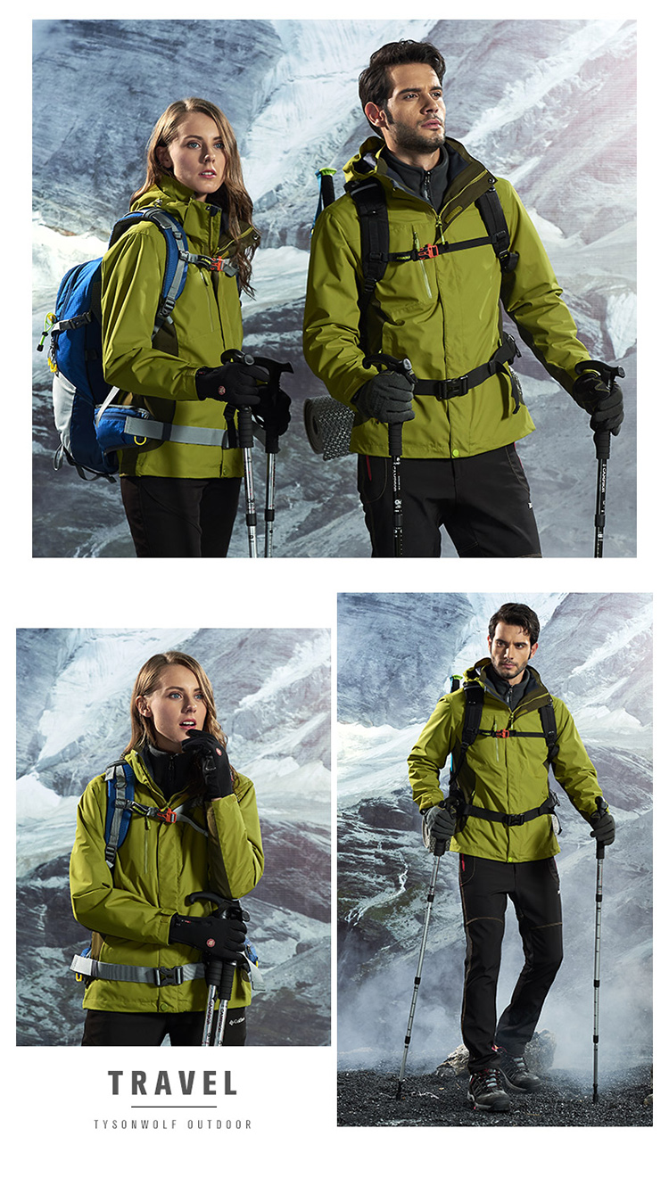 防風防雨,鎖溫保暖,腋下透氣網洞,3合1沖鋒衣,內膽可拆卸